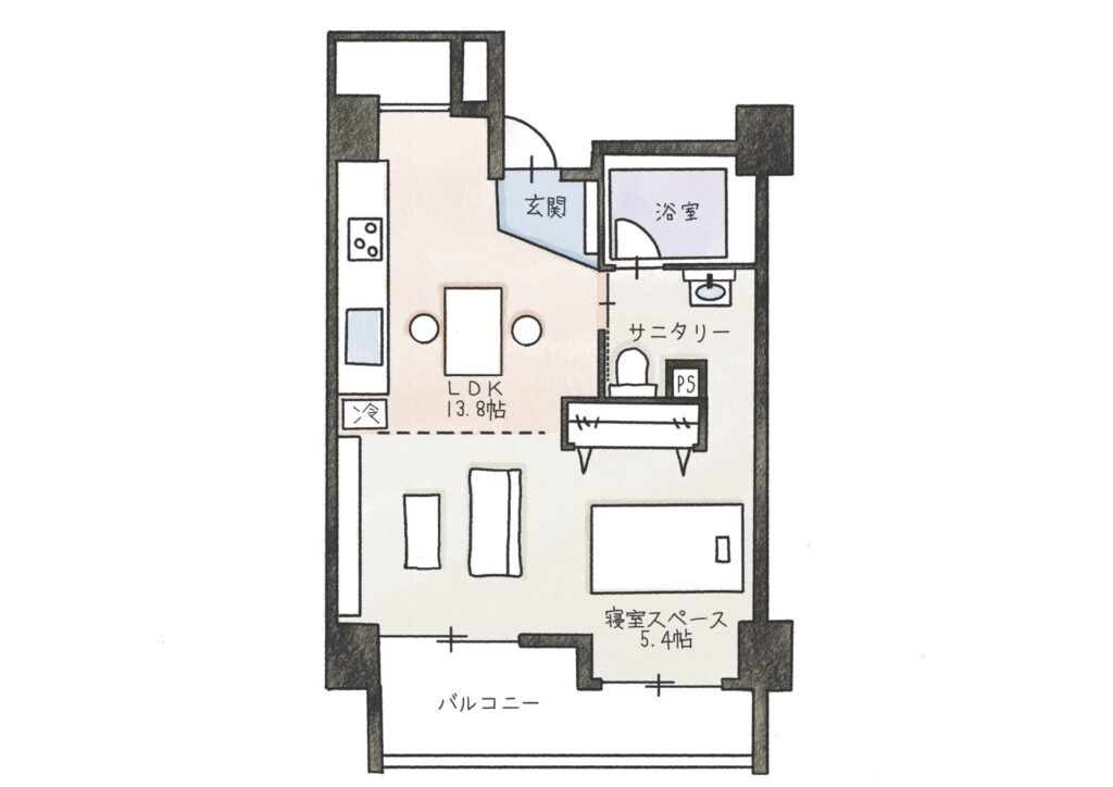 Kさん:人を招いて家でお酒を飲めるようにしたいということ、終の住処としてひとりで住みつづけられる家にしたいということ、2LDKをワンルームにしたいということを伝えました。