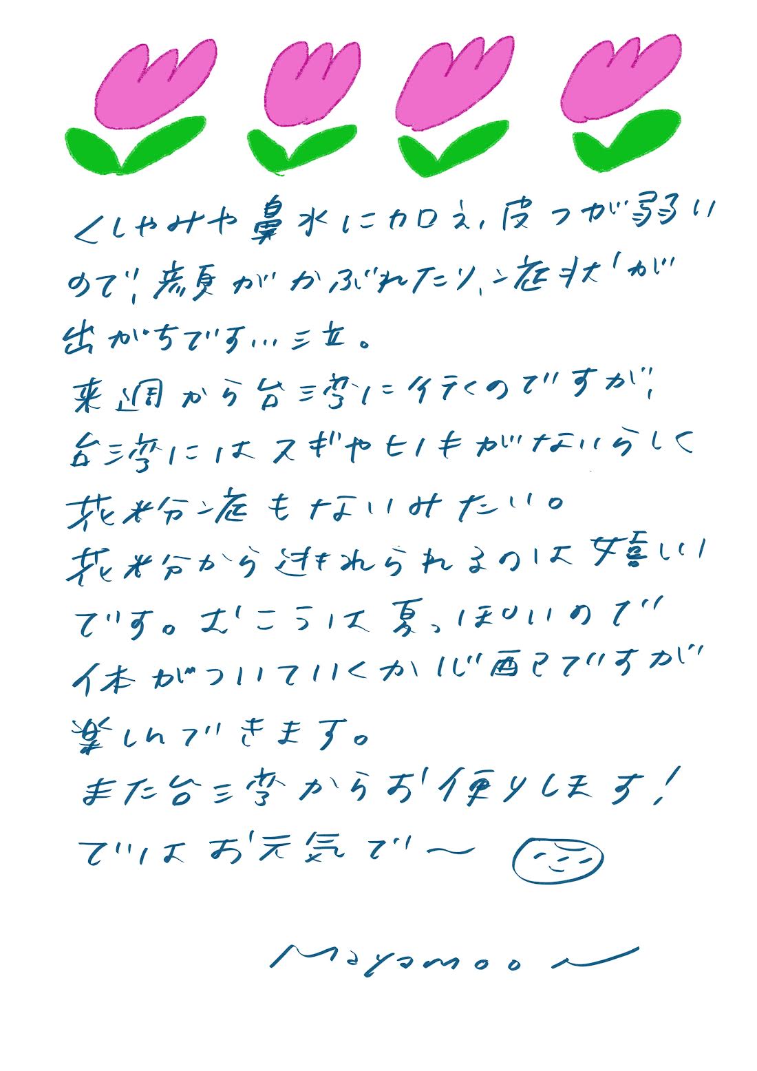 お元気ですか? 週に一度、あなた宛にお手紙を書きます。まだ薄暗い冬の朝、早春の木々の蕾の膨らみ、真夏に背を伸ばす草たち、秋の落ち葉を踏みしめる音。そっとお手紙を開くと季節ごとの移ろいを感じられます。日々の小さな出来事を通して、笑ったり、泣いたり、心が揺らいだり。どんな時もあなたの心にそっと寄り添ってくれる、そんなお手紙です。