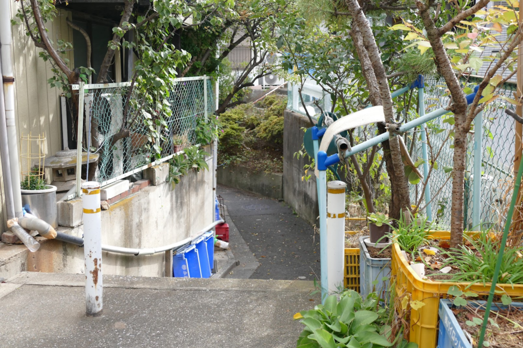 村田:暗渠沿いの園芸、社名のロゴ入りのプラスチックケースに木を植えて、それを洗濯物干しの土台にして。最高!