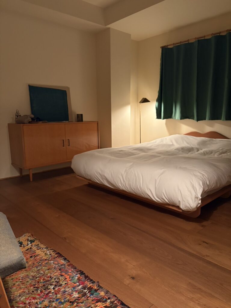 「山脈」と名づけられた部屋で、人の顔が見えるもの、自然な素材、古き良きものをセレクトされた宿のオーナーのお話も一つ一つが思い出です。1階のダイニングバーでは、地元の方や観光客など色んな方々が思い思いの時間を過ごされていて、子連れでも絶対大丈夫と思える心地よさがありました。